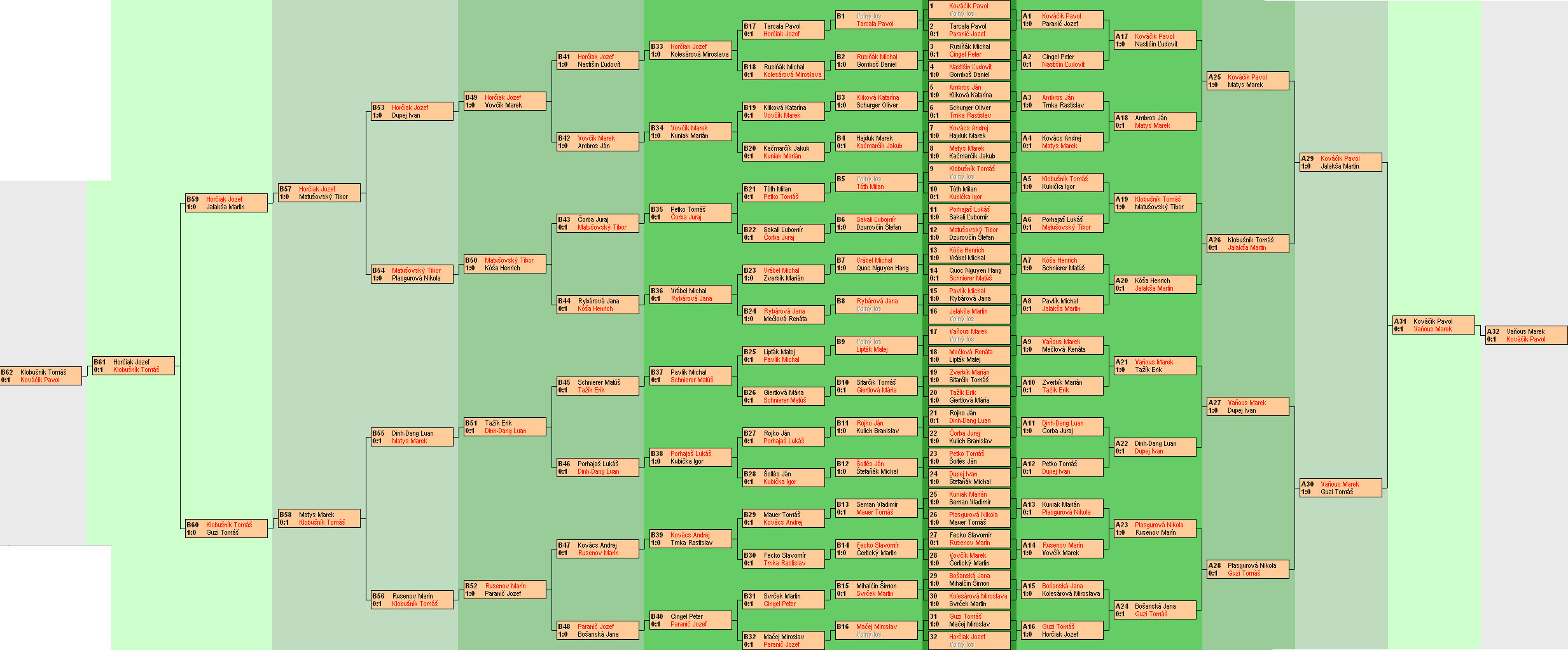 Body v open, ženských a juniorských dvojíc a jednotlivcov sa rátajú pre každého hráča zvlášť a zaratávajú sa do príslušného Republikového rebríčka FUS za sezónu.