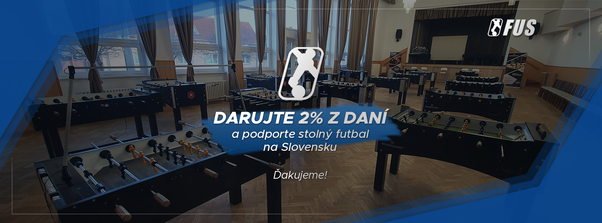 Podporte nás vašimi 2% z dane z príjmu. Podporíte tak rozvoj stolného futbalu v jednotlivých regiónoch, skvalitnenie súťaží, vznik a rozvoj nových klubov a tréningových centier. Rozvíjame činnosť a vytvárame vhodné podmienky pre juniorov, začínajúcich ale aj pro hráčov a reprezentantov Slovenska. S vašou podporou môžeme napredovať a spoločne s hráčmi môžeme dosahovať stále lepšie výsledky.