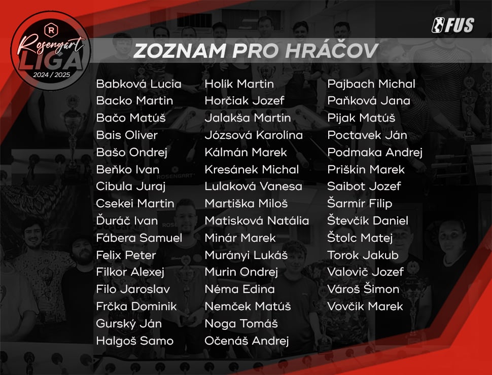 FUS ROSENGART LIGA DVOJÍC 2024/25 - REGISTRÁCIA!